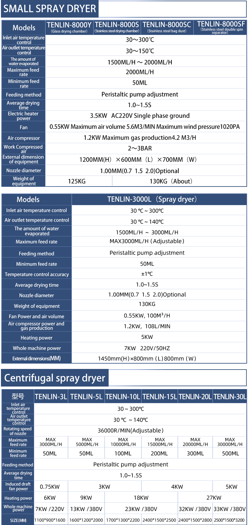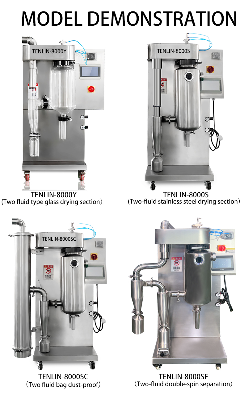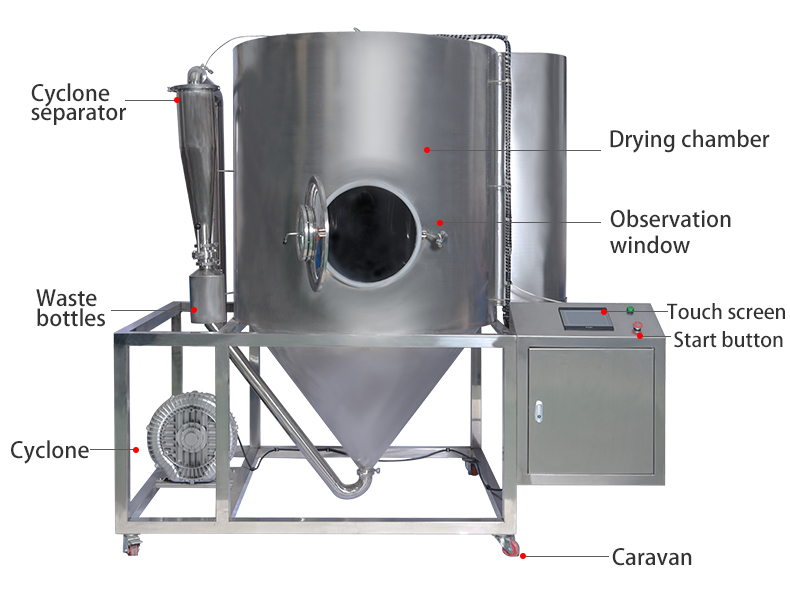 ●Spraying, drying and collecting devices are made of transparent and high quality high-temperature resistant borosilicate glass, and the whole process of spray drying experiment can be visualized.