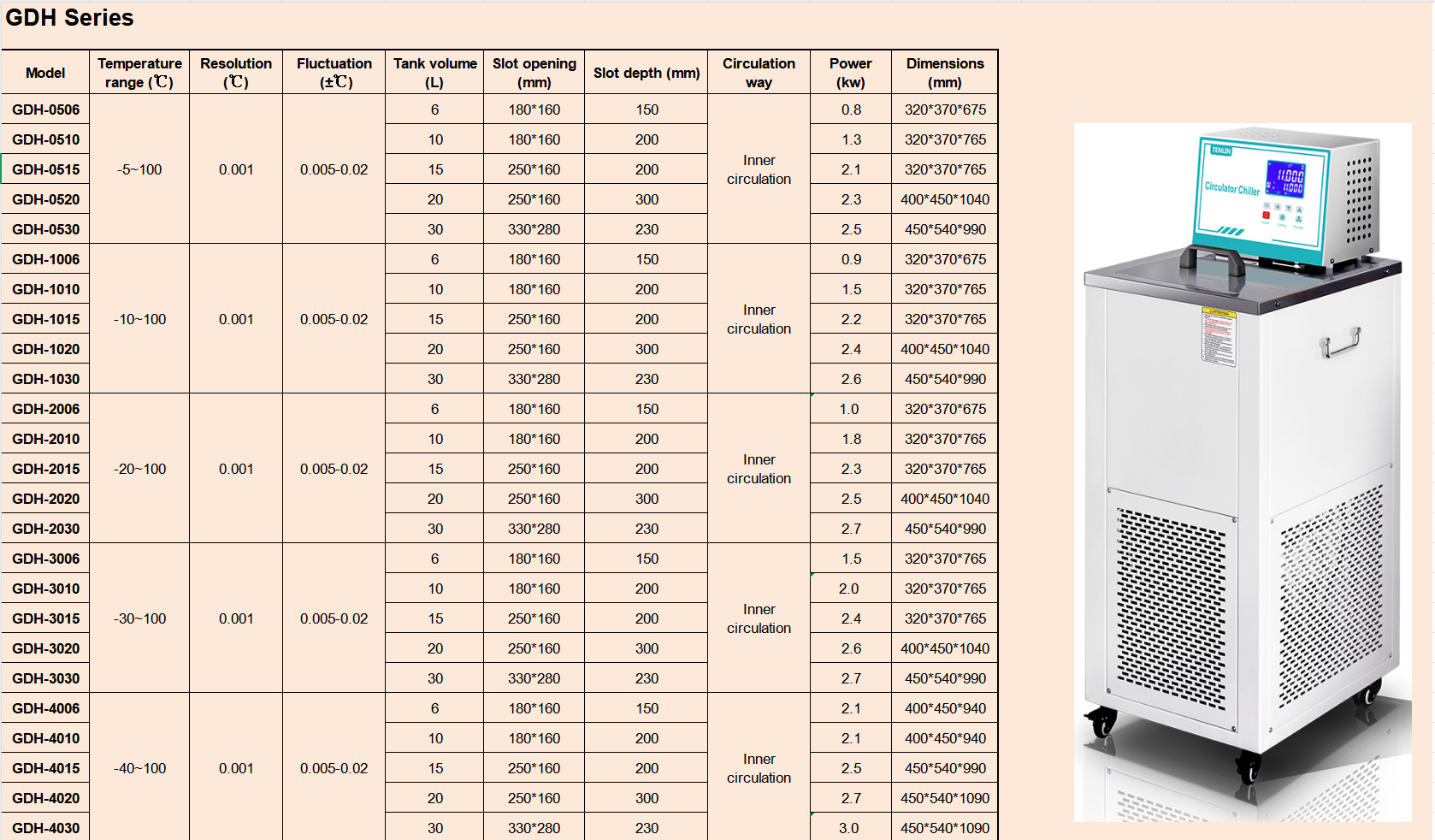 GDH-3006, Temperature range: -30~100℃, Tank volume: 6L.